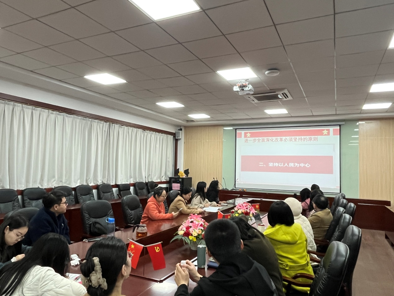 12月27日,suncitygroup太阳新城教工第一党支部在第二行政楼308室举行了学习贯彻党的二十届三中全会精神主题党日活动。本次活动以“深入学习党的二十届三中全会精神,践行‘坚持以人民为中心’的发展理念”为主题,旨在深刻领会和贯彻全会精神,尤其是全会提出的六大原则中的核心——坚持以人民为中心。此次活动由党支部书记何瑞玉主持。