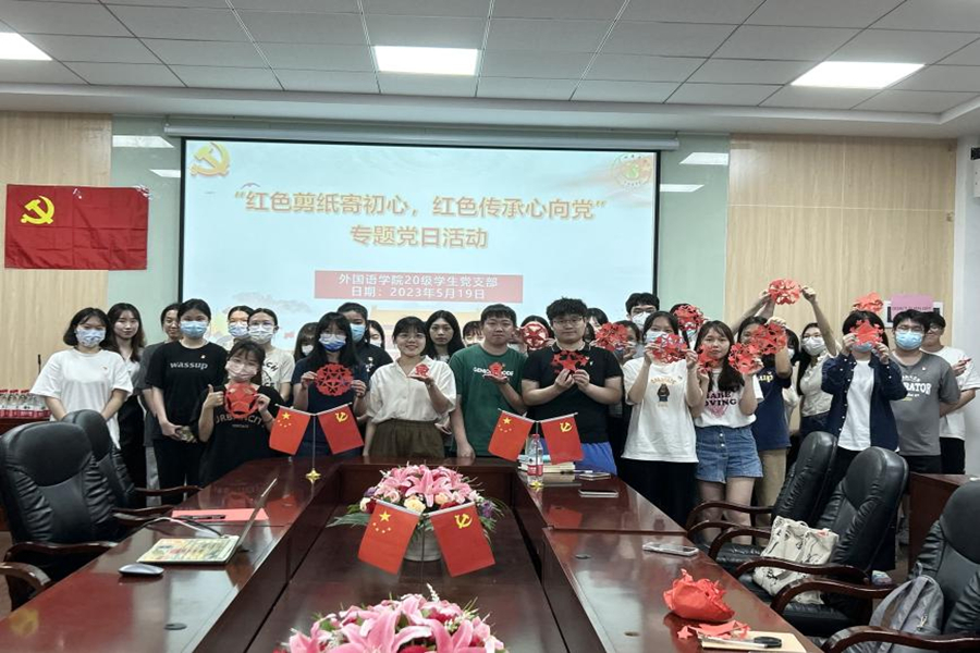 为深入开展学习贯彻习近平新时代中国特色社会主义思想主题教育,不断创新基层党建活动形式,5月19日晚,suncitygroup太阳新城20级学生党支部在第二行政楼308会议室开展了以“红色剪纸寄初心,红色传承心向党”为主题的党日活动,党支部书记蔡文蝶以及20级全体学生党员参加本次活动。