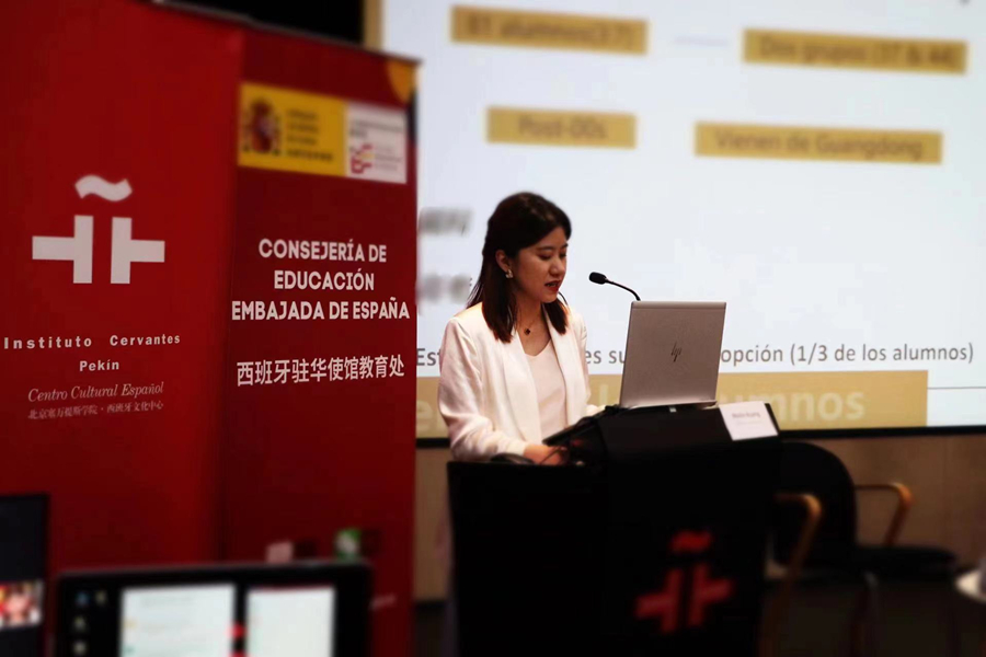 本次大会吸引了来自上海外国语大学、南开大学、香港大学、萨拉曼卡大学等大学的教授积极参加。与会老师通过线上或线下形式分别做主旨演讲,分享了各自的教学经验及教学模式。我院西班牙语专业邝美琳老师在会上进行了题目为“在民办高校教授《 基础西班牙语 》的挑战及教学创新”的发言,主要从四个方面讲述我校西班牙语专业如何培养应用型人才以及在本学期里教学创新举措,获得与会教师的高度评价。
