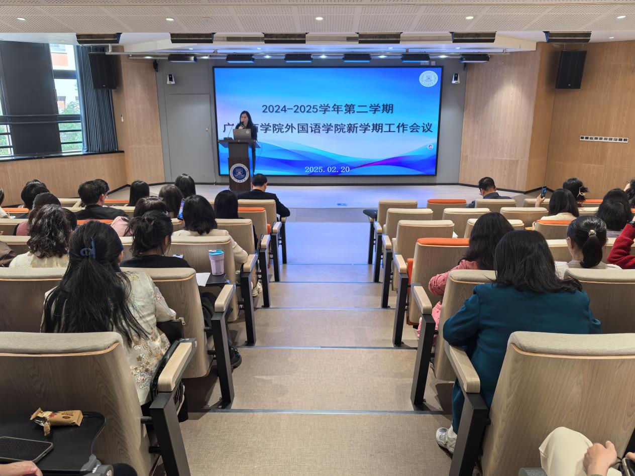 展望2025年,郭院长从党建、教学、科研、师资队伍建设、学生工作、行政管理、校企合作与对外交流等方面对学院的发展提出了新的目标和计划。她强调,学院将继续以党建为引领,深化教育教学改革,加强科研创新与师资队伍建设,稳步推进校企合作项目,探究AI如何赋能外语教育。最后,郭遂红院长针对AI技术赋能课程建设和教师数字素养提升进行了专题讲座。