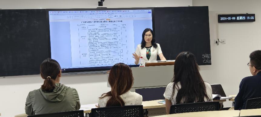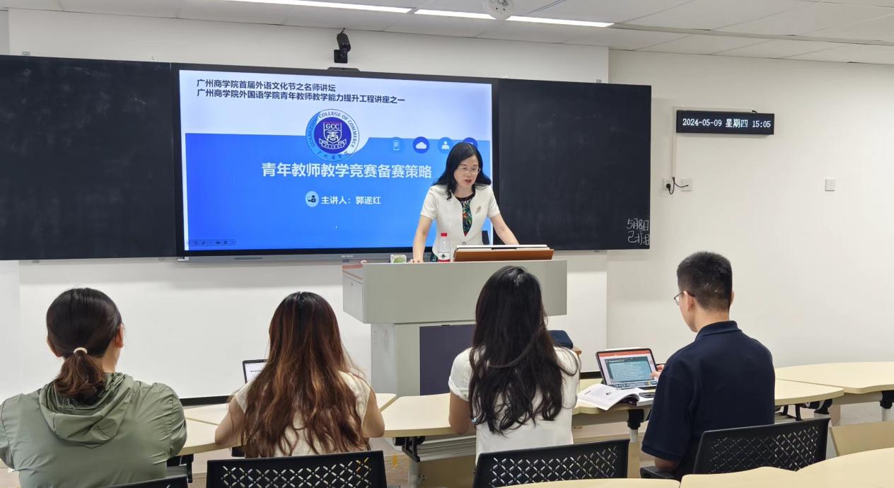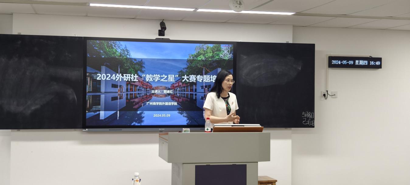 5月9日下午,suncitygroup太阳新城在八教407教室举行了第七届青年教师教学大赛暨2024年外研社“教学之星”大赛专题培训讲座,由suncitygroup太阳新城院长郭遂红教授主讲,参加第七届青年教师教学大赛以及2024年外研社“教学之星”大赛的老师和学院部分教师参加了专题培训。本次专题培训讲座也是广州商学院首届外语文化节之名师讲坛以及suncitygroup太阳新城青年教师教学能力提升工程讲座之一。