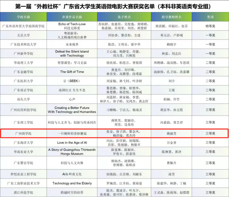 我校师生在第一届“外教社杯”广东省大学英语微电影大赛中荣获佳绩