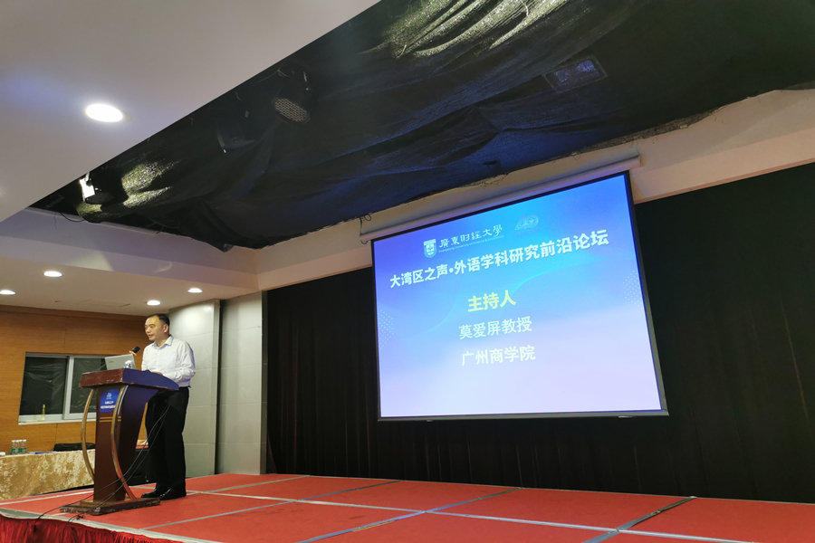 10月22日,广州商学院suncitygroup太阳新城15位教师由学院执行院长郭遂红带队,参加了在广东财经大学举行的“大湾区之声·外语学科研究前沿论坛”。本论坛聚焦新时代、新文科外语学科“高质量发展”的历史背景,重点关注外语学科前沿研究新的时代特征和内涵,旨在推动外语学科研究与新时代的融合,促进广大学者对相关问题的深刻思考。广东外语外贸大学冉永平教授、清华大学生安锋教授、北京航空航天大学任伟教授、中山大学邓志辉教授、澳门大学李德凤教授、东北师范大学高瑛教授、湖南师范大学曾艳钰教授等10多位专家做了学术报告。我院郭遂红教授以及莫爱屏教授应邀主持了学术报告。