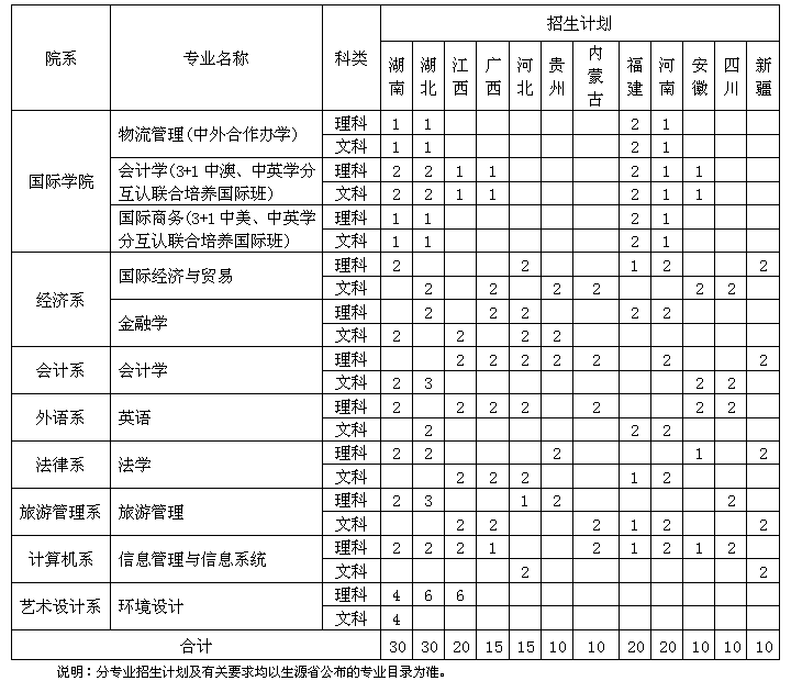 2015年广州商学院省外本科招生计划表