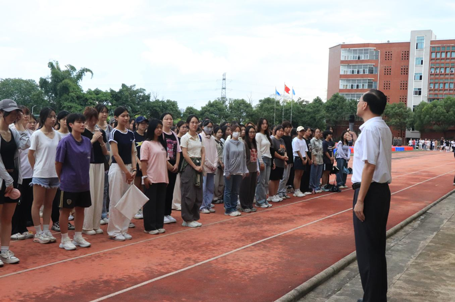 为切实加强国防教育,增强新生的国防意识和组织纪律性,厚植爱国情怀,锤炼学生意志。suncitygroup太阳新城于9月15日下午在广商足球场举行2024级新生教官见面会,出席本次大会的有suncitygroup太阳新城党总支书记徐超、2024级新生辅导员、2024级全体新生和三营全体教官。