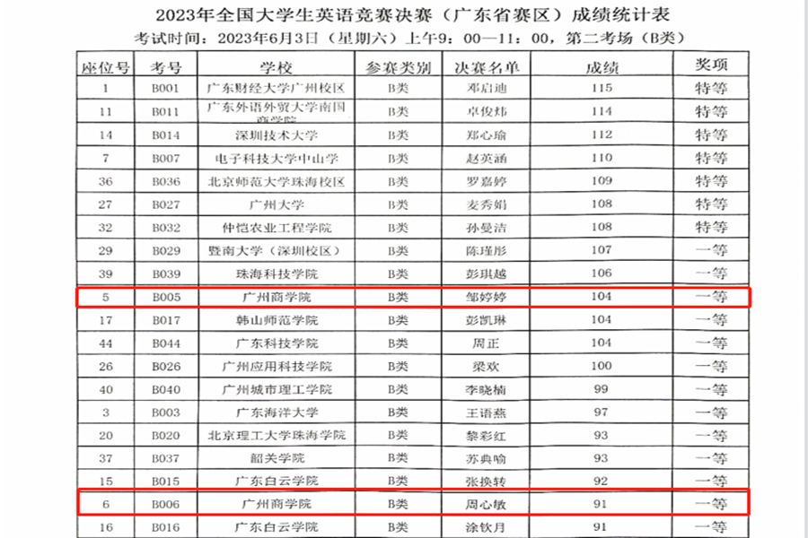 6月3日,2023年全国大学生英语竞赛(NECCS)决赛(广东省赛区)在广东财经大学拉开帷幕,我校suncitygroup太阳新城李卓华老师指导的suncitygroup太阳新城学生邹婷婷、周心敏、范隽宇、会计学院学生肖云舒、邓晔盈、信息技术与工程学院学生刘希晨、经济学院学生廖家乐以及现代信息产业学院学生陈语涵均荣获省级一等奖。