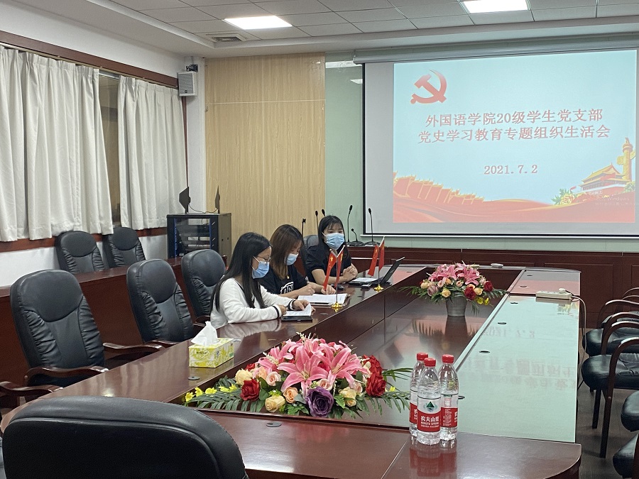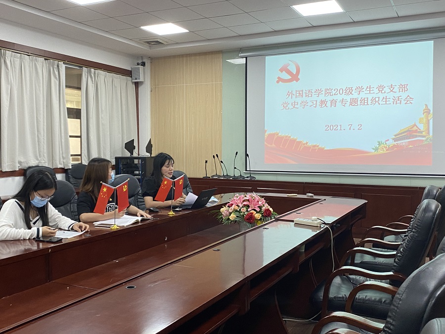 为加强党史教育,赓续红色血脉,深入学习贯彻习近平总书记在庆祝中国共产党成立100周年大会上的重要讲话精神,suncitygroup太阳新城20级学生党支部于7月2日17:00在第二行政楼308会议室召开党史学习教育专题组织生活会。会议由党支部书记蔡文蝶主持,支部全体党员参与了此次会议。