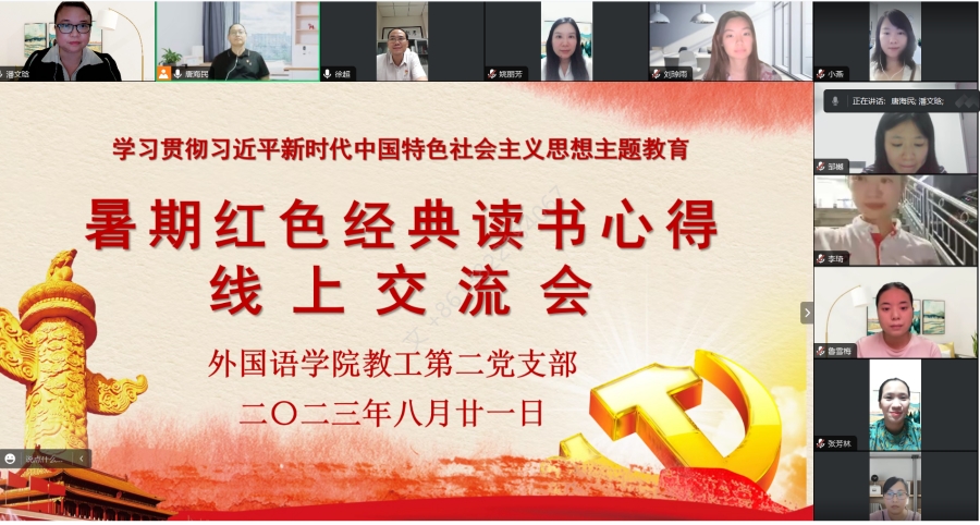 8月21日晚,suncitygroup太阳新城教工第二党支部于线上腾讯会议举办暑期红色经典读书交流活动。suncitygroup太阳新城党总支书记徐超、支部书记唐海民及支部全体教工党员参会。