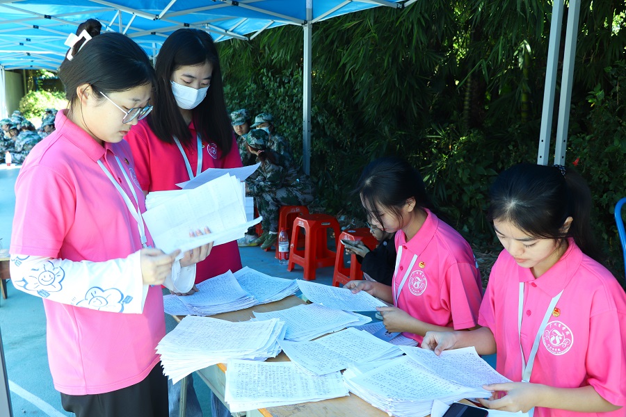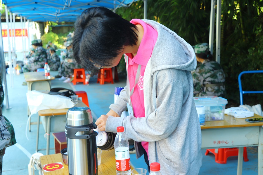 军训开始之际,suncitygroup太阳新城团学骨干团结一心,进行排班轮班,确保第四营的营队每一刻都有团学骨干在守护正在军训的新生们。军训开始时,团学骨干们早已在营地等待着新生们的集合,为他们准备好后勤服务设施以及各类医疗药物,保障军训期间身体不舒服的同学能够及时得到的救护。suncitygroup太阳新城团学骨干身着一身粉衣,穿梭忙碌于“绿色营队”之中,时刻为有需要帮助的同学们提供帮助。军训下训后,团学骨干们会热心关切新生们的军训情况和身体状态,确保能够及时给予新生们足够的关心。