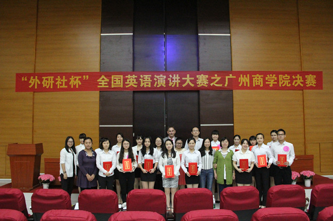 近日,“外研社杯”全国英语演讲大赛广州商学院赛区决赛在我院图书馆报告厅隆重举行。本次比赛特别邀请了外语系教师邵春发、郭伊芸、周晓丽、及国际学院蒙巧老师、外教Ozzie等担任评委。外语系党总支徐超书记、12级辅导员黄玉亭、口语协会指导老师雷肖茹等亲临现场观看。