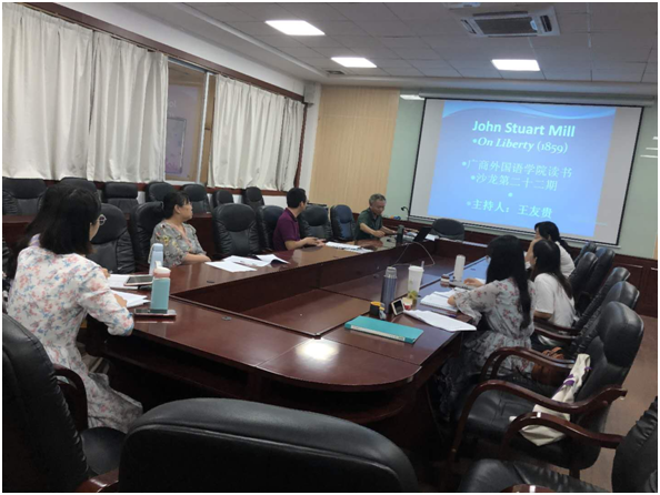为帮助各位英语老师提升文本细读能力,2020年9月17日下午,suncitygroup太阳新城王友贵教授在第二行政楼308室举行了本学期第一次英语专业沙龙,阅读的文本是On Liberty。由于去年已经细读过本文的第四五章,本次细读的重点是第1-3章。suncitygroup太阳新城副院长袁鑫和英语系部分老师参加了此次沙龙。