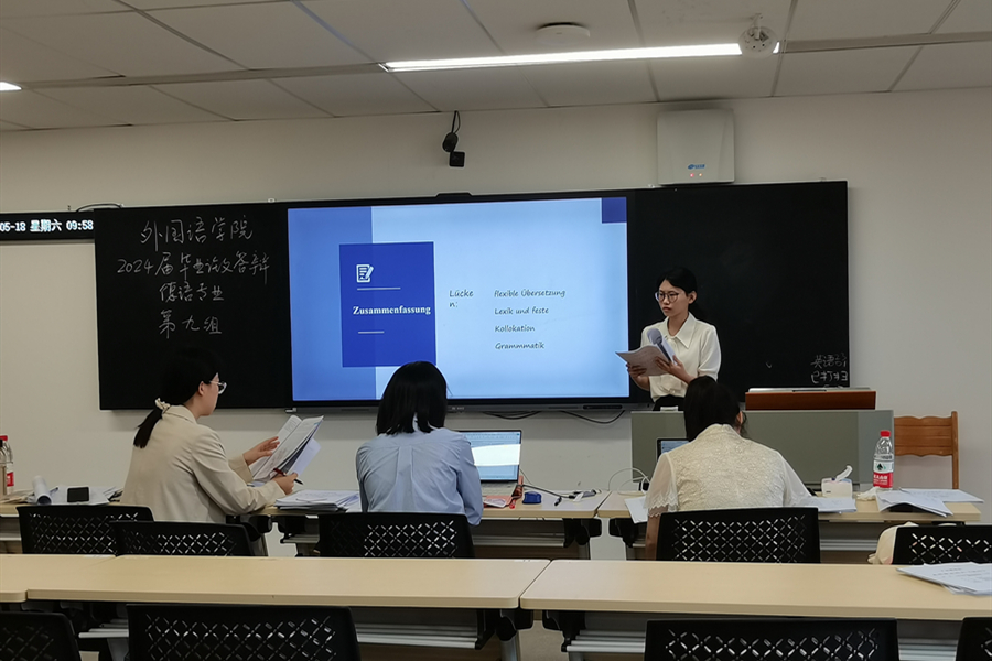 在学院高度重视下,suncitygroup太阳新城答辩工作准备充分,安排合理,组织有序,答辩整体情况良好。学院成立了答辩委员会,统筹答辩工作。参加本次论文答辩的毕业生人数较往年有所增加,两轮答辩共设45个答辩小组,其中英语、商务英语、日语、德语四个专业均设有优秀毕业论文答辩组。各答辩小组组成人员结构合理,学生分组得当,答辩现场秩序井然。整个答辩过程答辩老师和学生全部采用目标语(英语、日语或德语)进行。首先由学生全部以PPT演示的方式介绍论文结构,阐述主要观点。答辩老师们认真聆听、严格把关,就选题思路、论文结构分析等方面进行了提问,同时对同学们的论文进行了点评,进一步完善修改的意见和建议。最后,每组三位答辩老师对毕业论文成绩进行了评定。