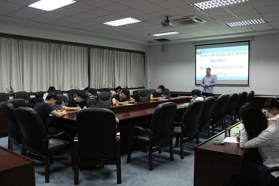 本次入学考试主要是考核学生的德语水平,分为笔试和口试两部分。成绩达到德语B1可以到德国高校中德文翻译专业学习,而达到B2等级则可在德国学校自主选择专业。为做好本次入学考试的备考工作,suncitygroup太阳新城领导和老师高度重视,在本学期开学初就为学生开设了专题辅导班,每周义务为学生进行考试指导,同时根据笔试和口试的题型进行了多次模拟考试,极大地提升了学生的专业知识和技能。根据主考官Willams和学生的双向反馈,今年16级德语国际班的学生考试情况较去年有较大的提升,双方高校对此表示满意。