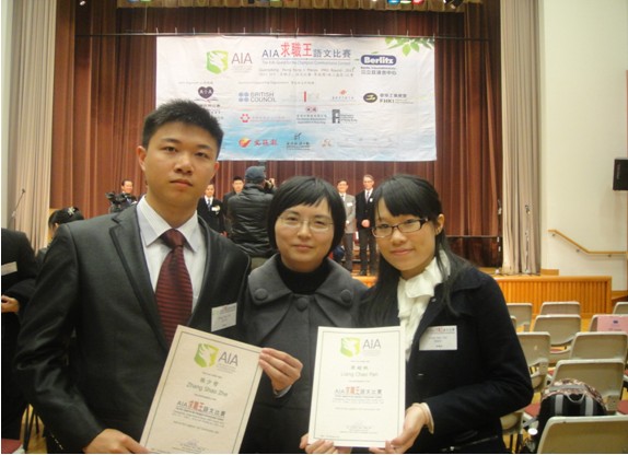 2月26日,第十一届AIA[求职王]语文比赛(粤港澳赛区)在香港跑马地礼顿山社区会堂举行。来自香港、澳门、广东等地的二十名大学生选手参加了比赛,其中广东两所学校参赛。我院外语系通过层层选拔,确定由09级涉外翻译方向的张少哲同学、10级涉外翻译方向的梁超帆同学参加比赛。张蕾老师担任指导老师。