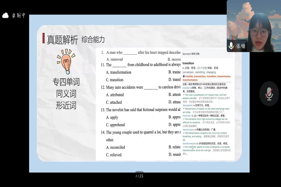 任青从考试简介、报名条件、考试内容及大纲、备考及报考指南四个方面展开了详细的介绍,帮助同学们进一步了解CATTI三级笔译考试的实用性、考试评测的能力和要求以及备考大方向。张珊结合自身经验,从考题内容、真题解析、备考资源三大方面深入地梳理了考试要点、难度、具体备考方法、注意事项以及备考资源的使用建议。两位老师在答疑环节,细致、认真地回答了同学们的疑问。