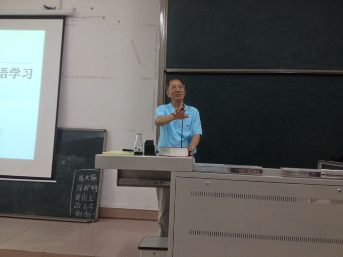 培养学生自主学习能力一直是外语系教学改革的目标。“工欲善其事,必先利其器。”词典是学外语专业学生必不可少的一种工具,要想学好外语,必须先学会使用词典。但是如何使用词典使学习更有效率?如何通过有效使用词典提高学生自主学习能力?针对这些问题,作为2014级导学周活动的一个延续,外语系请来了英语专业学科带头人何广铿教授给14级新生做了一个讲座,题目是“有效使用词典,抓好外语学习”。
