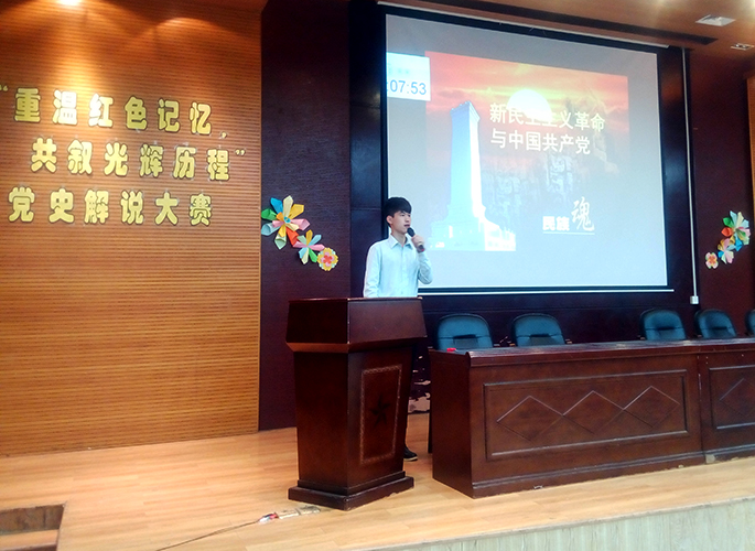 晚上19时30分,党史解说大赛决赛拉开帷幕。六名选手以慷慨激昂的态度和饱满的热情依次对“七七事变”; 新民主主义革命;社会主义建设道路初步探索的意义和经验教训;文化大革命;十一届三中全会后社会主义发展新时期;改革开放与现代化建设新阶段等六段的历史进行了图文并茂的解说。最终经过激烈角逐三号选手黄炜成荣获第一名,四号选手黎淑仪位居第二名,六号选手李丽苹获得第三名,