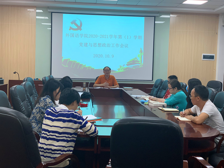 10月9日下午,suncitygroup太阳新城党总支在第二行政楼308会议室召开2020-2021学年第(1)学期党建与思想政治工作会议,集中学习了《习近平谈治国理政》第三卷这本重要著作,明确了接下来学院党建工作重点及日常学生管理工作计划。学院各党支部书记、全体辅导员参加会议,会议由我院党总支书记徐超主持。