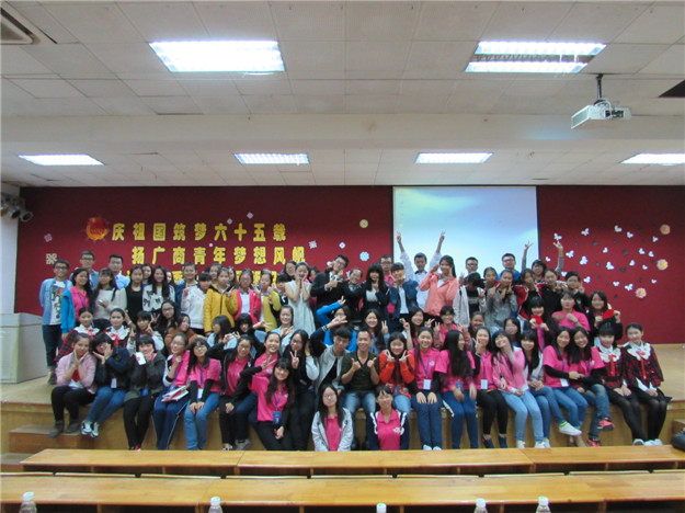 11月14日19:30,外语系于教学楼A206举办了以“庆祖国筑梦六十五载,扬广商青年梦想风帆”为主题的示范性团组织生活;外语系团委书记刘万里,学生会指导老师黄玉亭以及各兄弟系代表莅临了当天活动的现场。