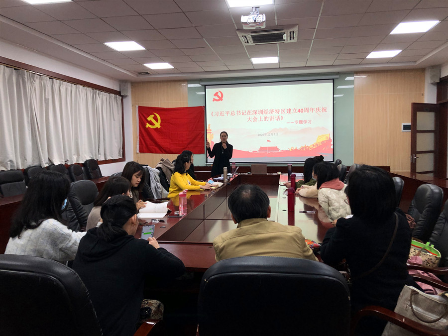 12月8日中午,suncitygroup太阳新城教工第一党支部在第二行政楼308开展“学习习近平总书记出席深圳经济特区建立40周年庆祝大会重要讲话精神”研讨活动,会议由党支部书记李海燕主持,全体党员参加。