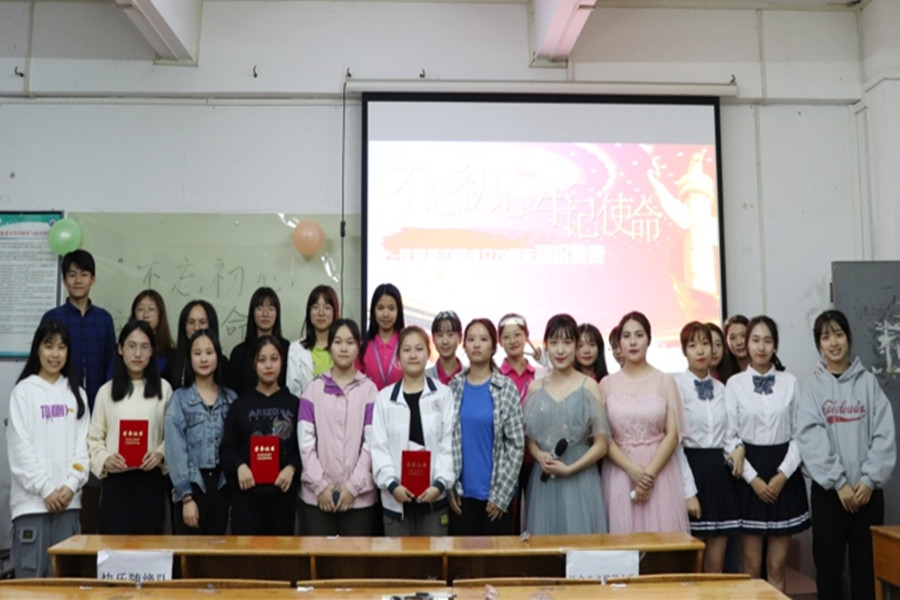 为激发外院学子学习理论知识的主动性和自觉性,营造以赛促学、学以致用的学习氛围,深切落实“不忘初心,牢记使命”主题教育,我院于11月27日19:00在三教204展开“不忘初心,牢记使命”知识竞赛院级初赛,出席本次初赛的有学院学生会主席黄雨珊、副主席吴桐、陈文政。