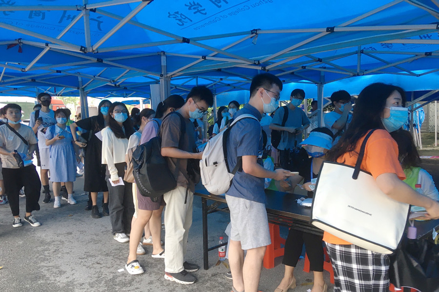 7月3日,我校迎来了2022年第一次日本语能力测试(JLPT),本次考试我校考点共设N1至N2两个等级,考场93个,迎来了广东、福建、海南、广西、湖南、湖北、江西、陕西等地共计3344名考生,人数突破历史新高;今年学校还贴心地为第一批进校考生赠送了国潮来袭系列的纪念纸扇,预祝考试旗开得胜,获得考生好评。