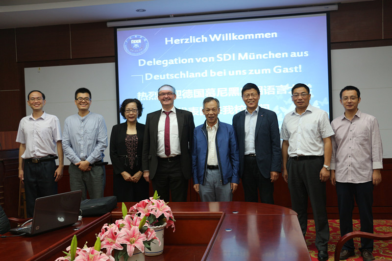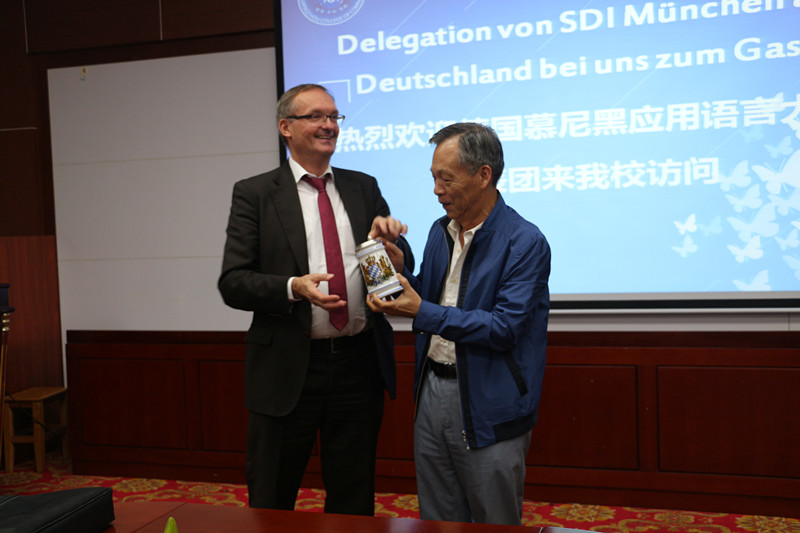 杨文轩首先对德方校长和老师们的到来表示热烈地欢迎,并详细介绍了我校的办学历史、办学理念、办学模式以及取得的办学成绩,同时代表学校表达了对中德国际班项目的寄望。马蔚兰就中德国际班目前的办学情况作了详细的报告。Felix Maye校长则介绍了慕尼黑应用语言大学的办学情况,生活环境,学位认证等相关事宜,并提出,为迎接中德国际班学生,慕尼黑应用语言大学特意新建了30个学生公寓,以进一步改善学生的住宿条件。同时,针对中德国际班项目学生的学习实际,德方在人才培养方案、课程设置等方面做了相应的调整。张忠福就中德两校在合作中如何进行课程对接、师资共享、学分互认、考试选拔等问题与德方校长与老师交换了意见并达成一致共识。本次会面为明年第一批赴德的项目学生做好了充分的准备。