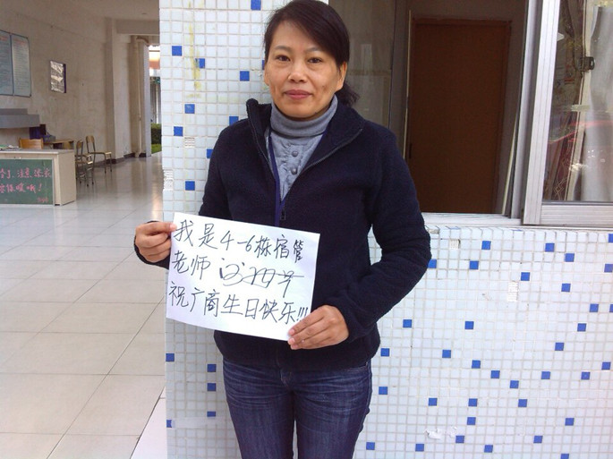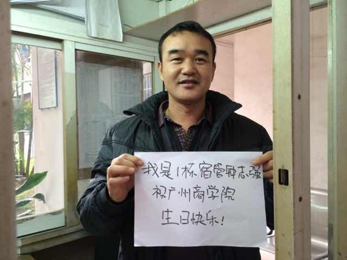 十五年来,校园里有这么一群人,他们一直坚守在校园的园林绿化、饮食服务、宿管、安全保卫、搬运等基础前线,他们用汗水和踏实保证了学院基础工作的正常运转,是师生可以安心学习、科研、生活的坚强后盾。他们是学院基层工作人员,为献礼广州商学院十五周年,外语系学生会学生干部代表走访了学院部分宿管老师,用镜头记录他们最美的笑容,为学院送上生日祝福。
