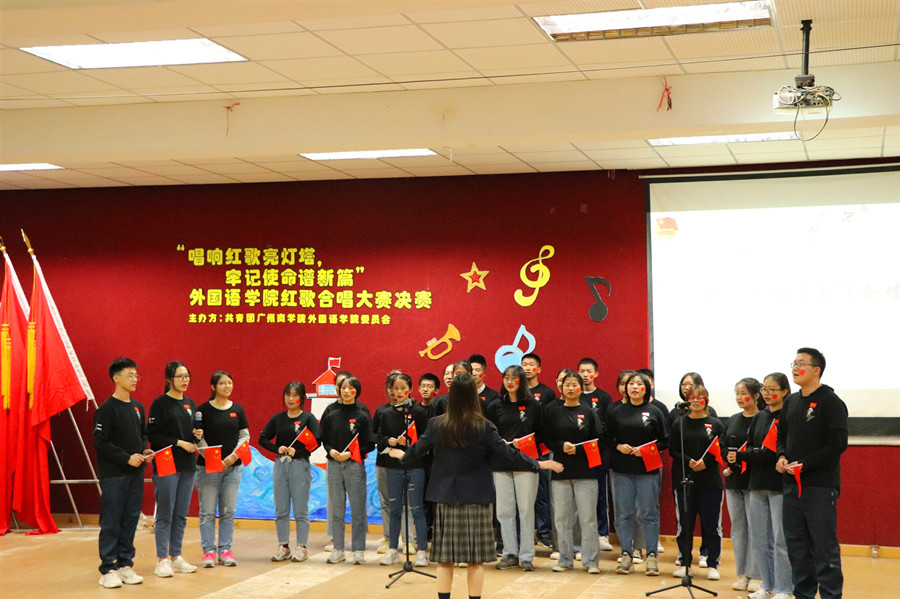 经过激烈竞逐下脱颖而出的八支参赛队伍,在今晚的决赛现场上贡献出了一场场精彩绝伦的表演,他们的合唱让红歌大赛现场热情涌动。活动以博雅吟唱团的《山丹丹花开红艳艳》表演拉开序幕,给现场的观众带来了一场长笛、古筝、琵琶、二胡与钢琴相融的音乐盛宴。比赛正式开始,红狮队给我们带来了《保卫黄河》,他们身着统一的民国服饰,神情从容自信。他们纵情高歌,唱响红色基因,表达出对黄河母亲浓厚的爱。红鹰JCT合唱队给我们带来的《红旗飘飘》展现了广商莘莘学子积极向上、励志图强的青春风采。那些花儿队给我们带来了《东方红》,他们以饱满的激情、嘹亮的歌声深情演绎了这首立意鲜明、催人向上的红歌。经过参赛队伍们一轮轮的火力比拼,最终,那些花儿队荣获一等奖、红鹰JCT合唱队荣获二等奖、红狮队荣获三等奖,合唱大赛决赛在阵阵掌声中落下了帷幕。