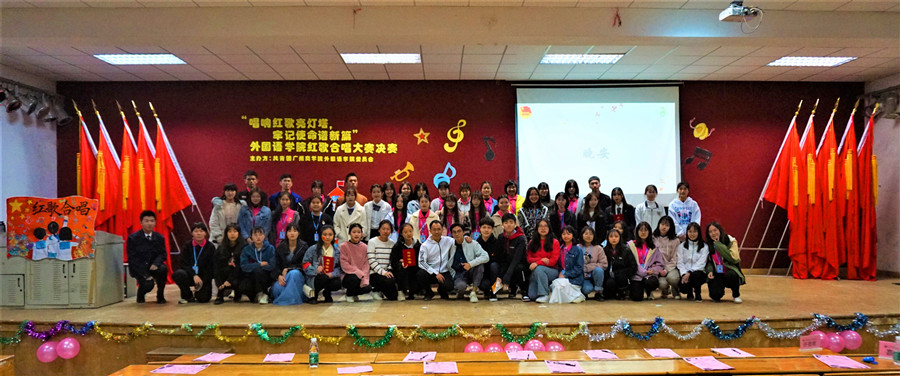 为积极响应时代号召,鼓励青年学生勇于担当时代使命,12月8日,我院团委以“唱响红歌亮灯塔,牢记使命谱新篇”为主题,在一教206举行学院首届红歌合唱大赛。学院党总支书记徐超、团委书记刘万里、团委副书记郑灿玲、辅导员伍思颖、刘丽萍、刘丽以及各二级学院代表、学院19级新生出席本次活动。