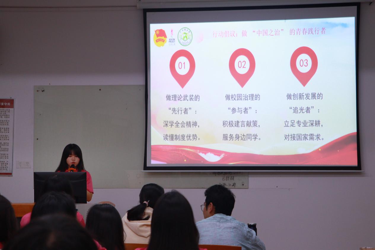 会上,李梦娇进一步明确实践路径,要求全体成员从理论学习转向实际行动,主动参与校园治理与国家发展实践。她指出,要将“中国之治”的宏伟蓝图化为具体举措:通过开展校园环保创新挑战赛、搭建宿舍优化诉求反馈通道等“三型”团支部建设,推动学生会成员从理论学习的“旁观者”转变为校园治理的“参与者”;利用外语优势参与“一带一路”相关志愿服务,切实把制度优势转化为服务实效。