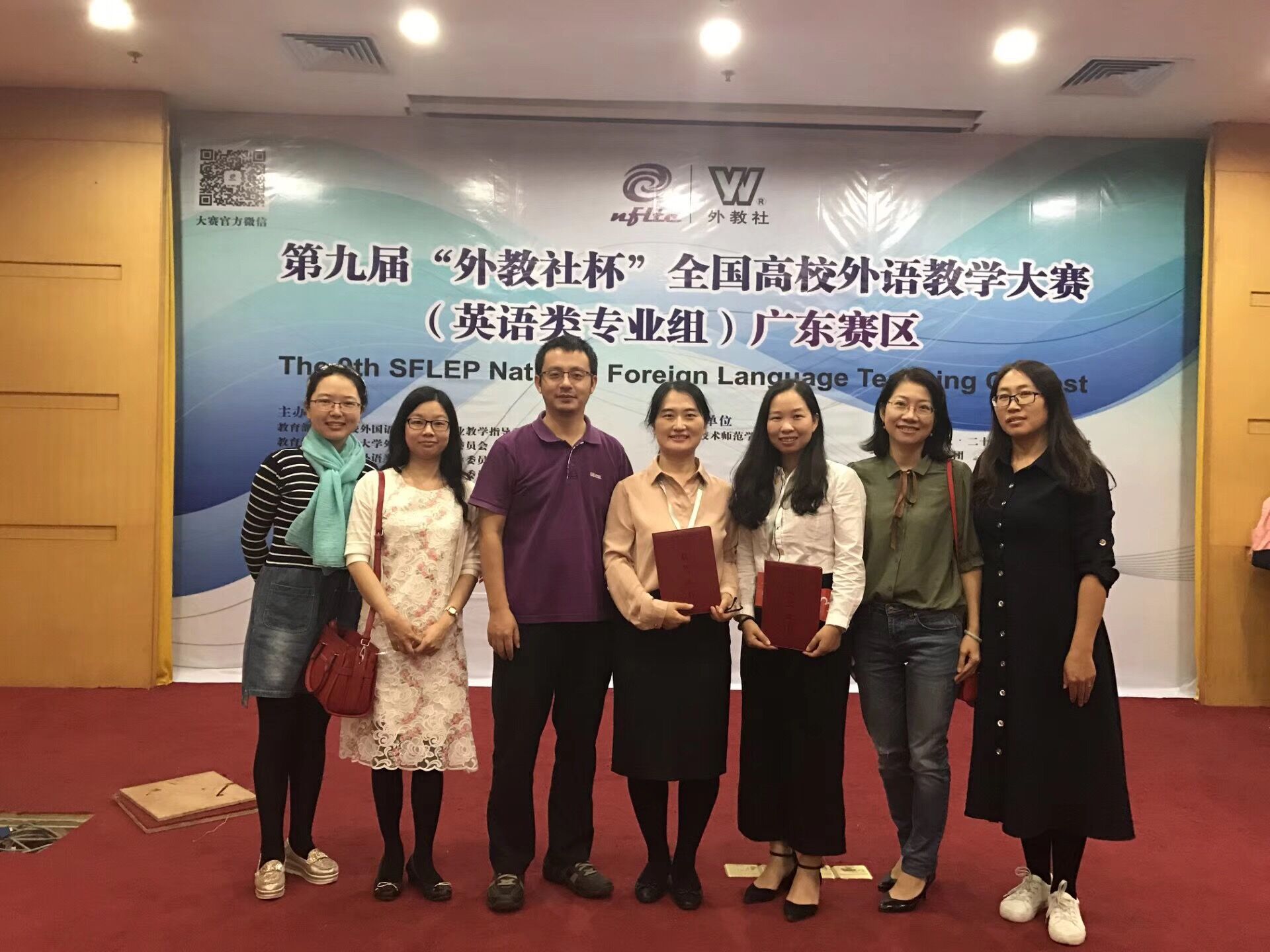 2018年10月27日,由教育部高等学校外国语言文学类专业教学指导委员会、教育部高等学校大学外语教学指导委员会、教育部职业院校外语类专业教学指导委员会、广东省本科高校外语类专业教学指导委员会和上海外语教育出版社联合主办的“广东省2018年本科高校外语教学大赛”暨“第九届‘外教社杯’全国高校外语教学大赛(广东赛区)”决赛在广东技术师范大学举行。我院的邵春发老师和任青老师经过复赛的激烈角逐,顺利进入各专业组的前十名,从而进入决赛,并以优异的表现最终分别获得了“英语专业组”和“商务英语专业组”的二等奖。