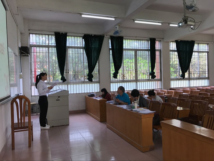 5月6日上午8:30,论文答辩正式开始。答辩过程中学生全部使用PPT进行演示论文主要内容,然后答辩老师就论文进行提问,并提出修改建议,整个答辩过程答辩老师和学生均采取外文进行提问和答辩,最后,答辩的老师根据学生的表现给出了相应的成绩,不合格的学生进入第二轮答辩。