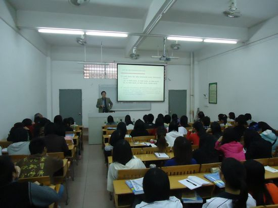 2010年12月2日,德国开姆尼兹工业大学熊火金博士来我院举办“德国文化与德语学习”的学术讲座。刘根正副院长、外语系胡光忠主任、马林副教授, 2010级德语专业的全体同学以及部分旅游管理系学生参加了本次讲座。系党总支书记徐超主持讲座。