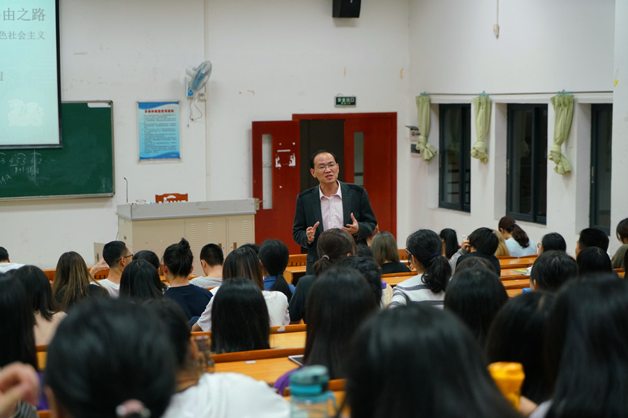 为进一步强化当代大学生的思想政治引领,教育引导青年学生认识时代使命、担当时代使命,坚定对社会主义和共产主义的信念。我院于3月27日晚在第四教学楼308举行了以“实现中华民族伟大复兴的必由之路”为主题的思想政治理论课,主讲人为党总支书记徐超,2018级商务英语及日语专业的近200名学生参与了本次课程的学习。