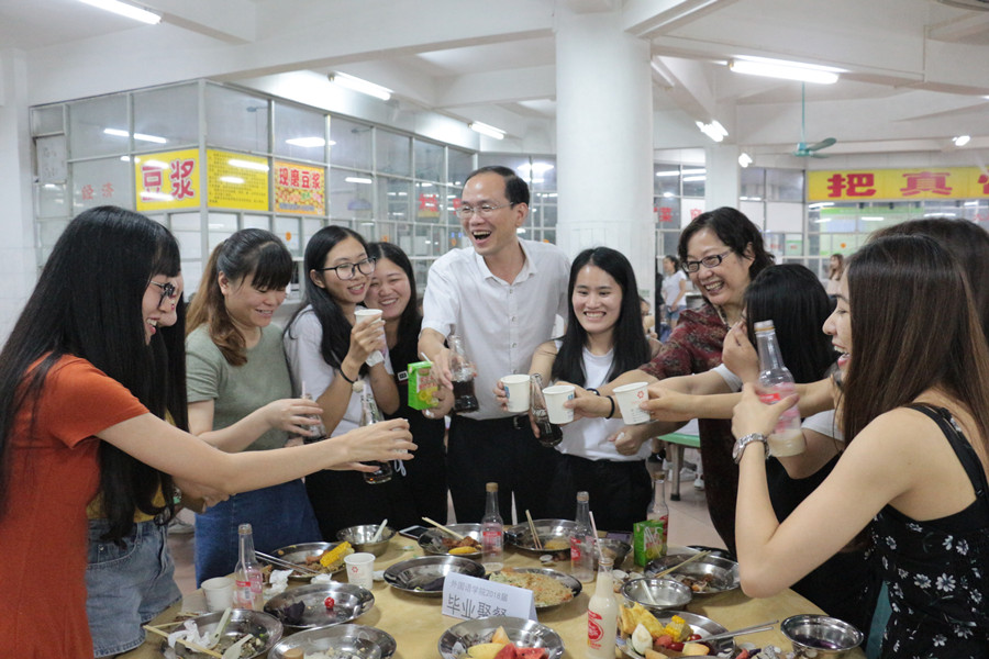 18:00,我院“谢恩师,道离别”毕业聚餐在学校第一饭堂以自助餐形式举行,毕业生结伴同行,欢喜入座。马蔚兰院长餐前致辞,她寄语全体毕业生,此次之后,将是一个社会人;要学会对自己负责,要知道没有人“应该”为你做什么;要学会成长,阳光下,愿毕业生们做个孩子,享受快乐;风雨里,愿毕业生们能够成为大人,勇担责任,不要拒绝成长。谢师宴中,毕业生和恩师们,时而举杯庆贺,时而拍照留念,时而欢呼喜悦,时而感慨离别,气氛其乐融融。