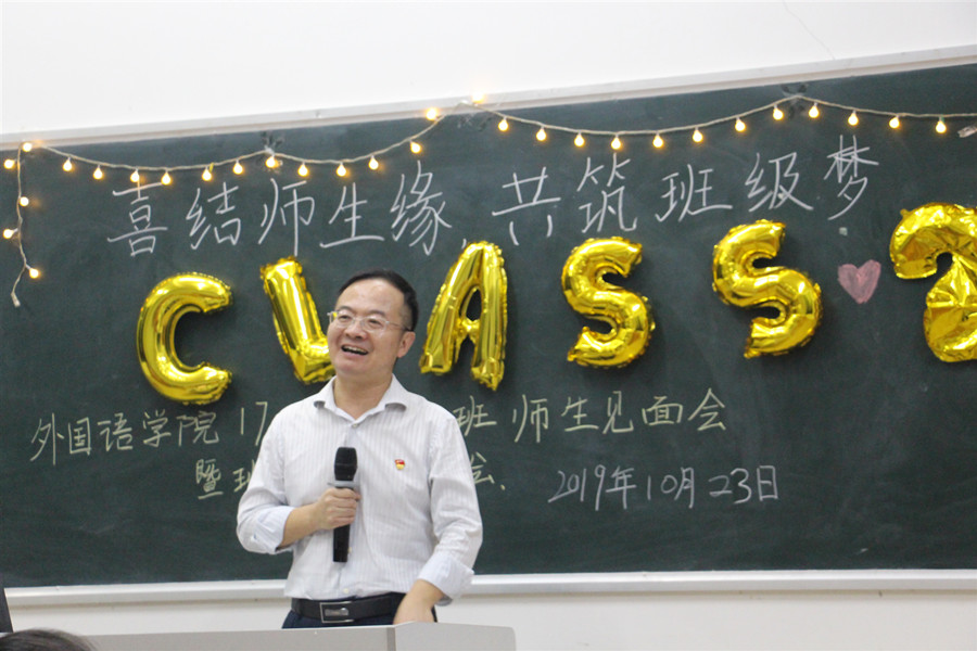 亲其师,信其道。良好的师生关系是教育教学活动顺利进行的重要保障,是实现“教学相长”的催化剂。为深入贯彻落实“不忘初心、牢记使命”主题教育,全面贯彻以立德树人为根本任务的教育方针,建立良好的新型师生关系,我院英语1702班于10月23日晚在四教111举行了师生见面会。班级结对子老师黄弢校长、班主任石佳、学院党总支书记徐超、辅导员郑灿玲出席现场,会议由班长林晓莉主持。