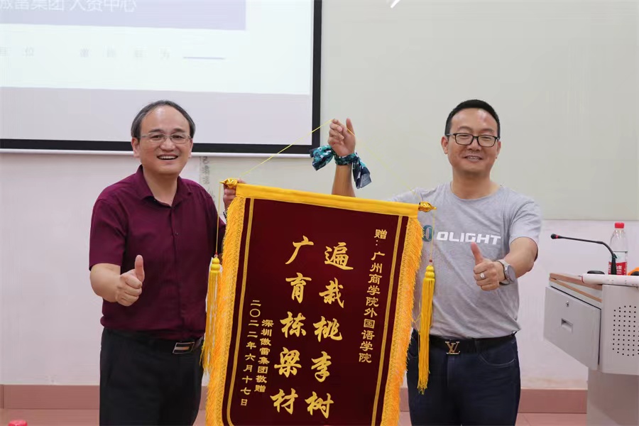 本次比赛得到了企业大力资助,两企业均对比赛制作视频深感满意,表达了深度参与suncitygroup太阳新城共同育人的愿望。深圳比特视讯有限公司提供了比赛经费赞助。深圳傲雷照明科技有限公司表达了设立“傲雷奖学金”的愿望,并在随后的企业宣讲中为suncitygroup太阳新城送上锦旗。