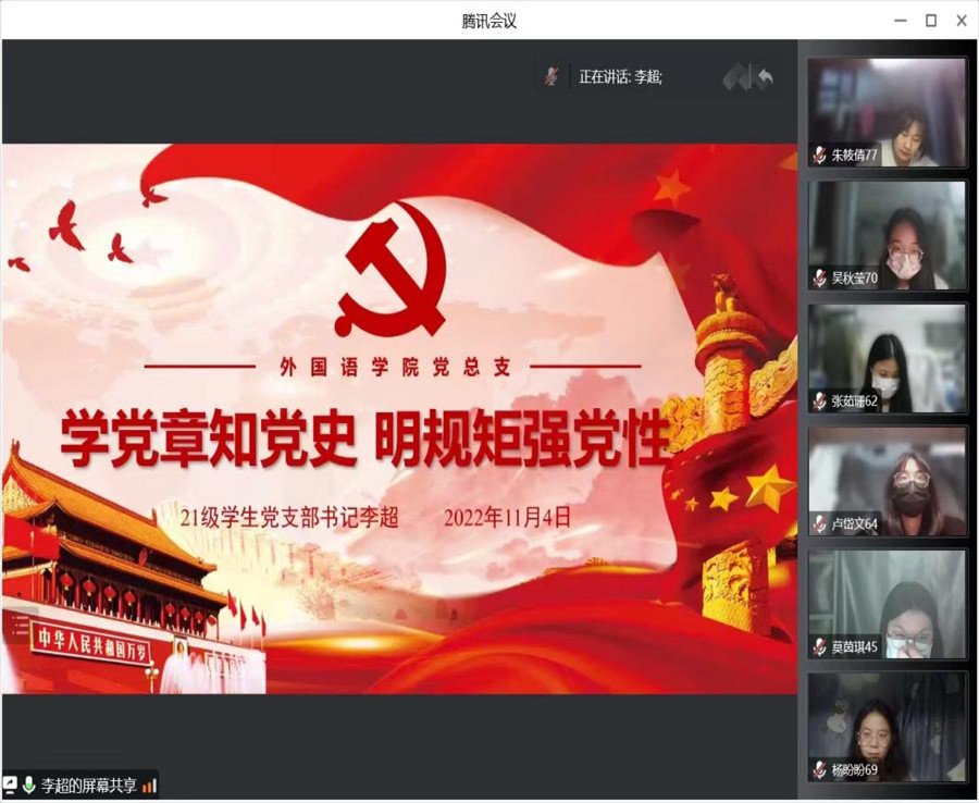 为进一步加强入党积极分子的培养和教育,我院分党校于11月4日晚七点在腾讯会议开展2022年第二期入党积极分子培训班第三课。本次课程由21级学生党支部书记李超授课,本期入党积极分子培训班全体学员参加学习。