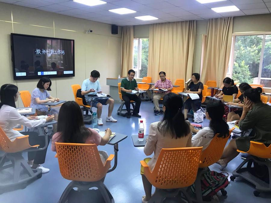 9月29日下午,我院“教师创新工作坊 第5期”在第二教学楼301微格教学实训室举行,副院长袁鑫和大学英语一教研室部分教师参加了此次工作坊。此次工作坊一方面是我院一项新教师培训活动,旨在通过对三位新教师的教学设计进行讨论和改进,提升新教师的教学能力;另一方面,2020级新生即将于10月10日开始上课,此次工作坊也是一次落实学校“六位一体”理念、做好新生大学英语教学工作的集体备课活动。在活动开始之前,我们制定了工作坊的流程和要求,并发给教研室所有教师。