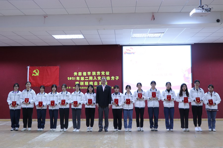 2021年11月17日晚7点,suncitygroup太阳新城分党校在第一教学楼206举行2021年第二期入党积极分子培训班结业典礼。学院党总支书记、分党校校长徐超,党总支组织委员、分党校指导老师谢清玲,19级辅导员孙玉博、蔡柳渊,20级辅导员蔡文蝶、丁洁,21级辅导员李超、何沛瑾出席本期结业学员参加典礼。本次结业典礼由分党校助理教员王思淇、李思浩主持。