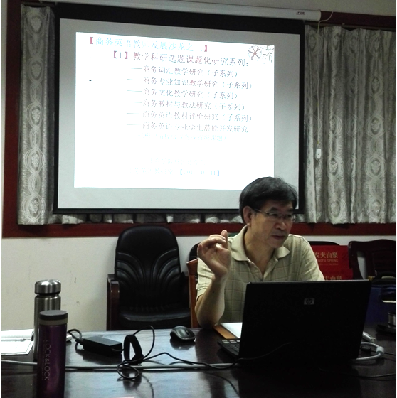 曾教授对商务英语专业的教师寄予了深厚的期望,他指出,学院和专业的发展和各位老师的自身成就是分不开的,他希望每个教师能尽快确定研究方向,申报自己的课题,力求每位教师都可以在2-3年内发表核心期刊论文,争取在2018年能够出版论文集《商务英语教学改革创新研究》等刊物或书籍,展示广州商学院商务英语教学的引领性研究成果。