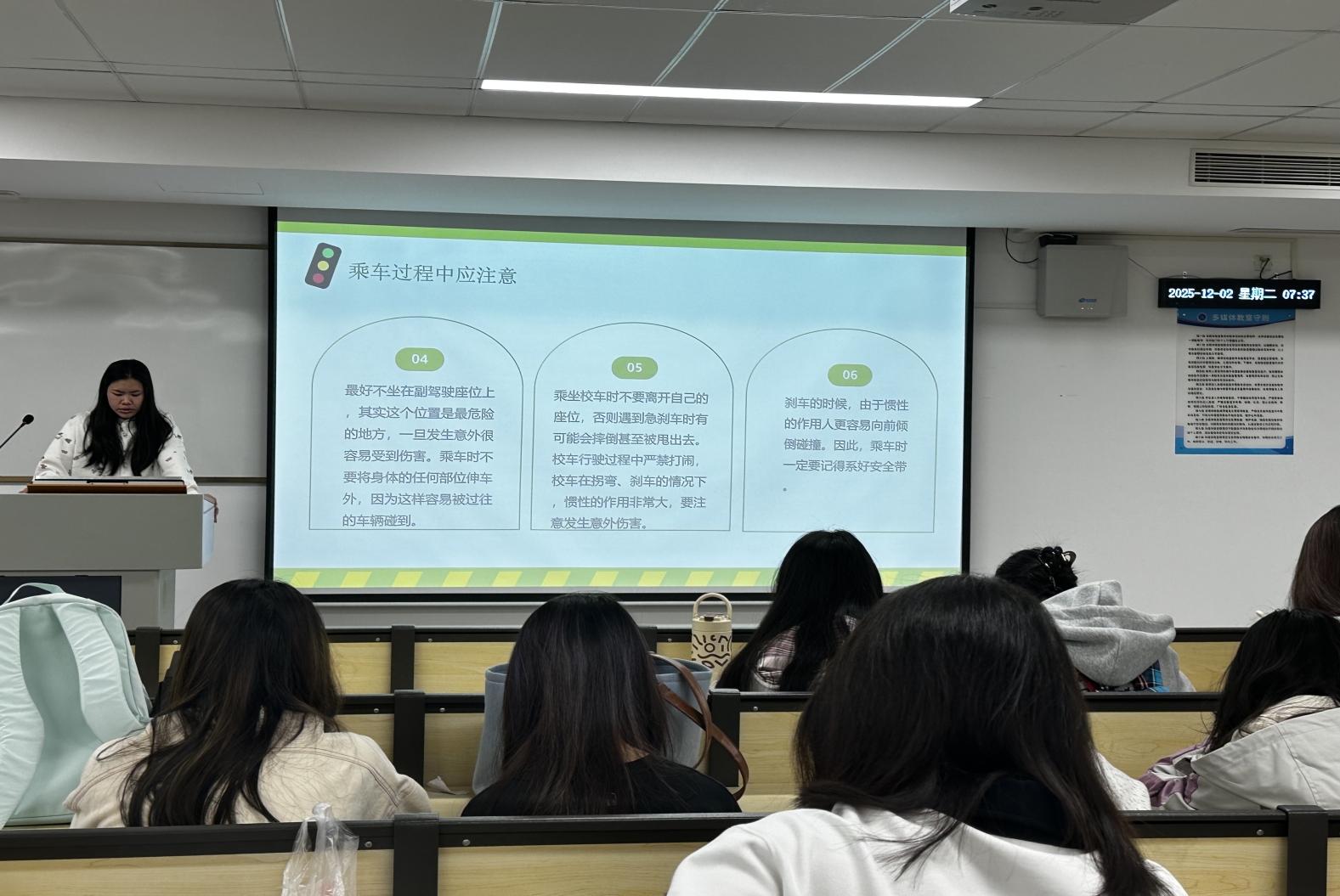本次交通安全主题分享会,让同学们一定程度上了解了交通安全相关的知识,全面提升了交通安全素养。校园交通安全的和谐稳定需要全体同学共同守护,希望同学们能从此次分享会中汲取经验,将安全意识融入每一次出行之中,携手筑牢校园交通安全的坚实防线。