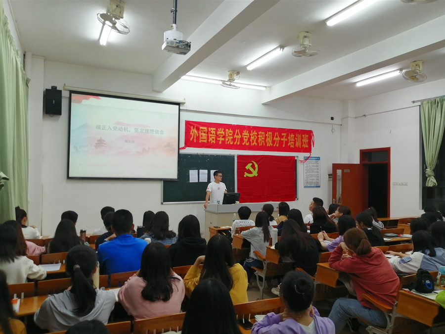 为了加强对入党积极分子的培训工作,深化党的基本理论、基本路线、基本纲领和基本经验教育,进一步提高入党积极分子的党的基础理论素养, 10月23日19:30,suncitygroup太阳新城分党校在四教110教室开展第二期入党积极分子培训班。此次党课的主题为“端正入党动机,坚定理想信念”,此次党课由17级学生党支部书记黄士库主讲,分党校指导老师刘丽及培训班学员参加学习。