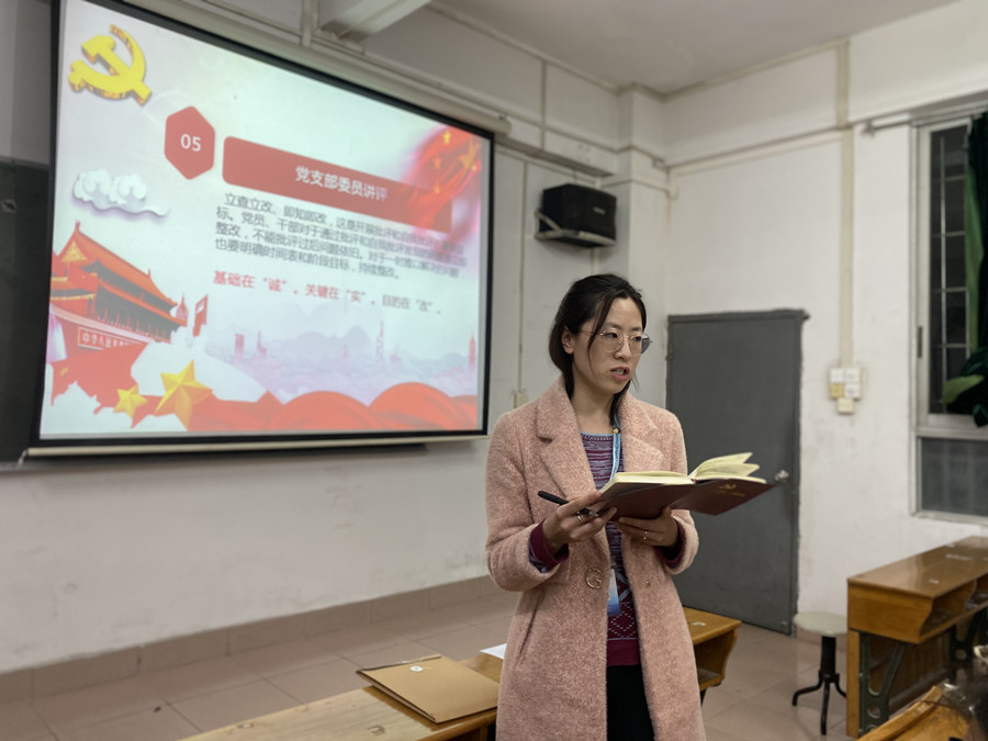 接着,每个党员对照党章党规和群众提出的意见建议查找差距情况,发挥党员先锋模范作用情况、立足岗位履职尽责情况、为师生服务情况等方面找差距和不足,实事求是地作出自我批评。支部其他党员从理论学习、深入群众、发挥先锋模范作用等方面对其展开批评,提出诚心的建议。戴玮结合各位党员的实际情况,综合支部委员的讨论结果,做讲评讲话,对每个党员提出成长建议。随后,发放测评表,各位党员根据民主评议情况,结合平时掌握情况进行综合分析,按照“优秀”、“合格”、“基本合格”、“不合格”四个等级,对党支部班子开展测评,对每名党员开展评议并提出评定意见。