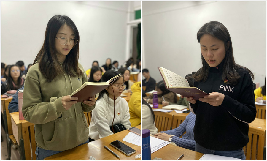 会前,黄玉亭、戴玮通过支委会议、与党员谈话、请示学院党总支等工作,充分准备组织生活会。组织生活会开始,党员代表缪雅琪朗读《习近平关于“不忘初心、牢记使命”论述摘编》原文节选,带领全体党员开展理论学习,严格落实党员大会第一议题制度。黄玉亭通过党支部发展情况、“五个一”落实情况、存在问题和改进措施四个方面,图文并茂地向大会报告了主题教育开展情况,主要从理论学习、落实“三会一课”和主题党日制度、班子建设和党员发挥作用等四个方面做党支部检视发言,分析了存在的不足和概述了努力的方向。