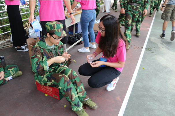 suncitygroup太阳新城的团学干部们从细节入手,以情感人;在帐篷下,每隔一段时间就给教官递上水和纸巾,缓解疲劳,与教官共进退,及时配合好教官的步伐工作,做好后勤保障,让教官全身心投入到训练任务中;在军训中,一旦发现药物物资有所稀缺,团学干部们马上快跑到学校外面的药店进行补货,丝毫不敢停下脚步,在炎热的太阳下奔跑着,及时给有需要的同学们提供补充体力;在同学们还未解散时,先准备好凉茶和葡萄糖水,一杯杯整齐地摆放在桌上,方便同学们拿取;对待病号学生嘘寒问暖,细心照顾病号同学,对突发状况应急处置等,凸显外国语团学干部对同学们的关爱;三是运用多种新媒体手段,对新生军训日记、投票话题进行点评与互动,扩大宣传;在军训解散后,篮场上总会留下外国语团委干部们的身影,他们把物资搬回原处,把场上的垃圾收拾好,饿着肚子任然留下来继续整理会场后才离开;这些无一不体现一个“情"字。