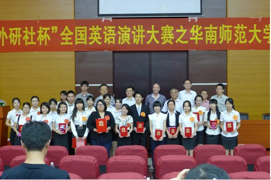 2012年5月25日下午,由教学处主办、外语系承办、学院英语口语协会协办的2012年“外研社杯”全国英语演讲比赛选拔赛暨华南师范大学增城学院决赛在图书报告厅圆满地落下了帷幕。学院副院长刘根正,外语系主任胡光忠,学生处副处长何柏略,教学处处长助理何茂炳,外语系党总支书记徐超,以及外语系各位老师出席了本次比赛。