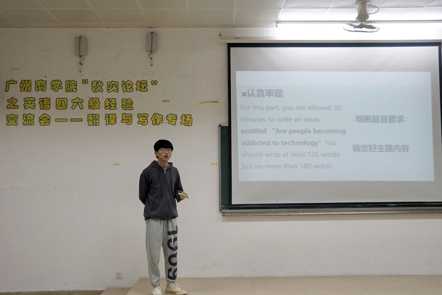 为了推进党史学习教育,积极开展“我为群众办实事”实践活动,满足同学们提高英语水平的需求,suncitygroup太阳新城教工党支部、教学与科研工作部学生学习支持中心联合主办,校学生会承办的“春华秋实讲坛”之大学英语四六级考试师生经验交流会于11月23日在四教第二报告厅举行。suncitygroup太阳新城教工第二党支部书记潘文晗老师担任主讲教师,suncitygroup太阳新城的詹慈欣和经济学院的张娜两位优秀学生代表担任学生嘉宾。