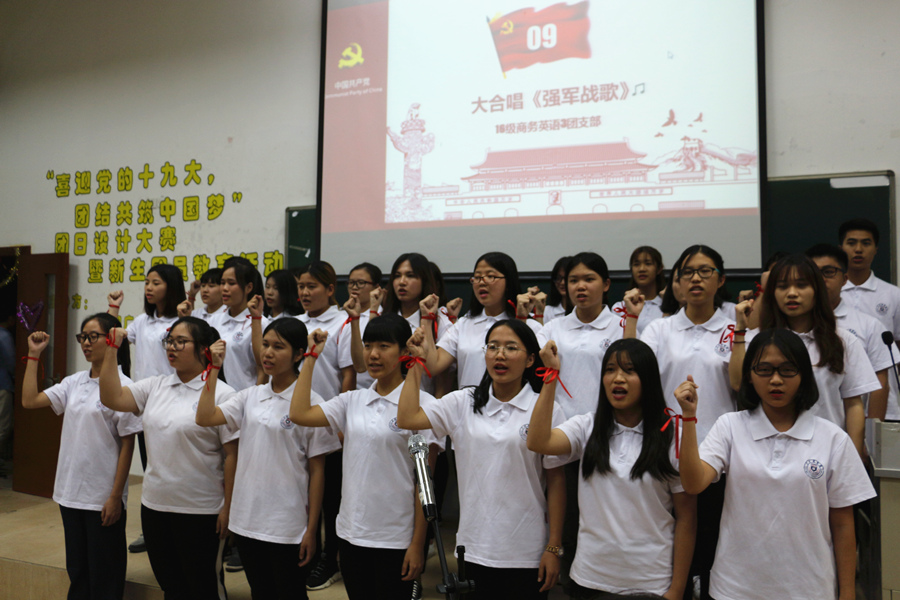 近日,我院以“喜迎党的十九大,团结共筑中国梦”为主题的团日设计大赛暨新生团员教育活动在第四教学楼308顺利举行。莅临本次活动的嘉宾有党总支书记徐超、团委书记刘丽萍,校团委秘书长赵芷薇、组织部副部长庞卫健,suncitygroup太阳新城团委副书记钟可歆、组织部正部长谭映凡以及各兄弟院系团委书记处成员。